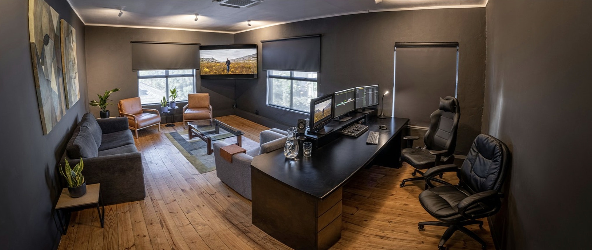 I work on Avid, Premiere Pro and DaVinci Resolve both internationally and from my own boutique edit suite in Woodstock, Cape Town. The edit suite boasts a broadcast monitor with DaVinci control panel, large screen and THX surround sound, good for director’s viewings and occasional movie screenings with unlimited popcorn.